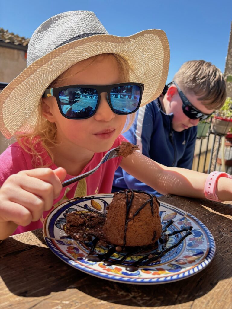 Na zakończenie polecam jeszcze jeden drobny rytuał: kawa i coś słodkiego w kawiarni na tarasie muzeum, z widokiem na dachy Corleone.